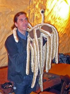 Elli S. gab eine prima Nudlerin ab und Nudelwasser pries die Reliquien in allen Tönen. Weil das aber auch mal aus anderen Sichten gefilmt werden sollte, gab es reichlich Wiederholungen. Nun können wohl fast alle das Glaubensbekenntnis und das Monsterunser auswendig. Jedenfalls wenn sie es geschafft haben, sich durch das Knurren ihrer Mägen nicht aus der Konzentration bringen zu lassen. Spät war es inzwischen geworden und wir etwas abgespannt. Ohne Spaghetti ging es aber doch nicht nach Hause. So wurde es dann 23:00 Uhr als wir mit allem fertig waren. Unsere Hoffotografin hatte haufenweise Bilder im Kasten. Weil ich aber vergessen habe, die auf meinen Stick zu ziehen, gibs die erst in 14 Tagen. Die längste Nudelmesse unserer Geschichte war Geschichte und wir satt, zufrieden und müde.