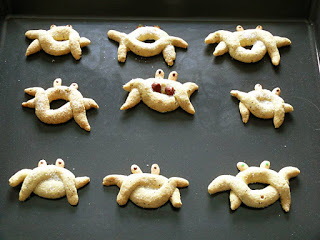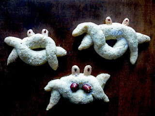 Zuckerlösung wälzen. Vorsicht! Die Kipferl sind warm noch sehr