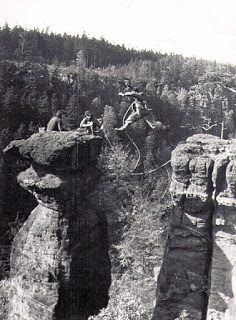 „Das war am 08.10.1976 Sprung 3 vom Massiv zur Falkenspitze im Bielatal. Wir haben den Sprung als 55. gemacht, nachdem der Erste, Anton Lexa,  es am 21.05.1956 eingeleitet hat.