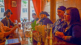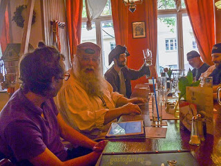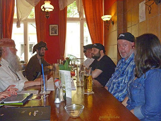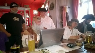 Vorsitzender ist Bruder Spaghettus (links verdeckt), Stellvertreter Luftpirat (rechts hinten) und Schatzmeister Cpt. Nodus (links hinten). Noch klarer, nämlich ohne Gegenstimme mit einer Enthaltung wurde die Revisionskommission, Tini Tortelini (verdeckt neben Luftpirat) und Bruder Nudelwasser (nicht anwesend) gewählt. Eine Stimme war leider ungültig.
