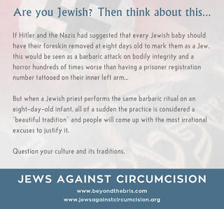 Damals war ein weitverbreitetes Argument, gerade wir Deutschen müssten Rücksicht auf jüdische Sitten und Gebräuche nehmen und deshalb die sonst streng verbotene Kindesmisshandlung, denn nichts anderes ist die Beschneidung letztlich, erlauben. Dann war es hilfreich zu zeigen, dass Beschneidung im Judentum keineswegs immer üblich war und sich auch in jüdischen Kreisen immer mehr Widerstand gegen diese (Un)Sitte regt, vor allem in den USA und Israel.