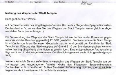 Das ist aber nicht unsere Website, sondern ein Artikel auf unserer Website. Ein Artikel, in dem es um Templin geht und in dem deshalb das Templiner Wappen gezeigt wird. Das soll verboten sein?