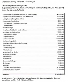Der deutsche Staat gibt jährlich Milliarden von Geldern an die Kirchen aus.***