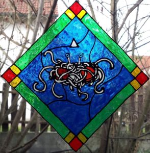 Gut drauf waren schon ein paar von euch, die uns ihre Bilder vom Pastatskranz geschickt haben. Bis jetzt haben alle ihren Preis sicher, denn mindestens einer der Kränze kommt von den Teilnehmern, die wegen zu enger Beziehungen zu Jurymitgliedern außer Konkurrenz laufen. Da ist also noch Luft nach oben und es lohnt sich immer noch, uns die Bilder von euren Kränzen zu schicken. Wer keinen hat und auch nicht noch schnell einen basteln will, aber auf andere Art zeitgemäß das Monster feiert, kann auch ein solches Bild nehmen.